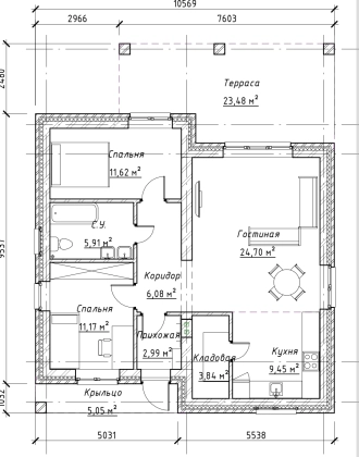 Кирпичный дом площадью 75,76м² плюс терасса - 23,48 м².