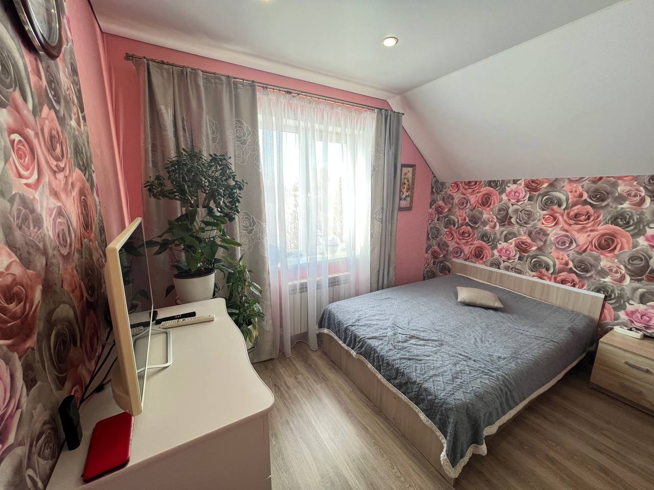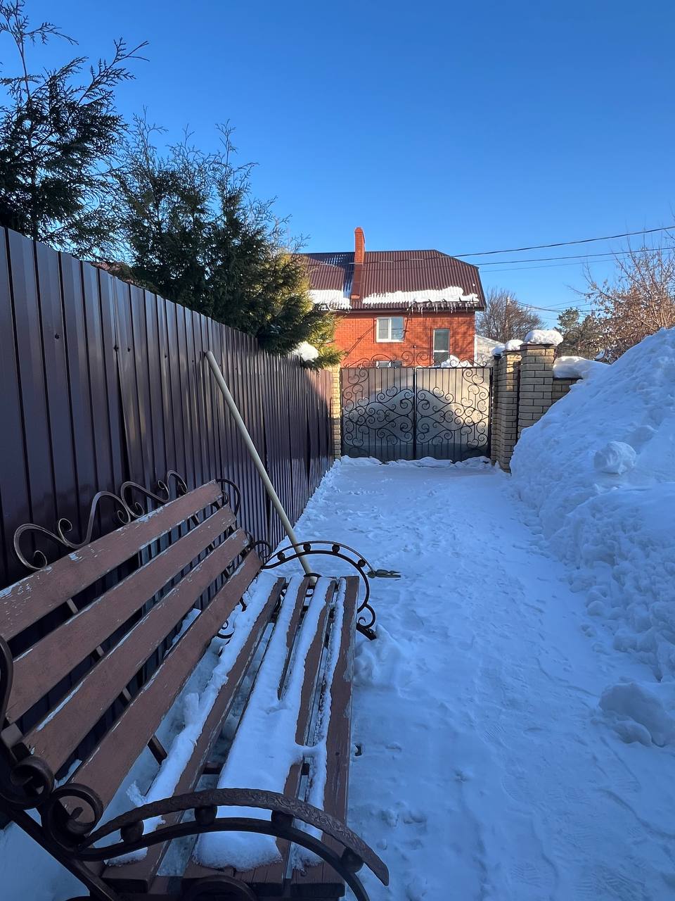 Дом идеально вписывается в живописный ландшафт района, где сочетаются удобства городской жизни и близость к природе. Участок огорожен надежным забором, а перед домом раскинулся ухоженный сад с плодовыми деревьями и декоративными кустарниками. Брусчатка перед входом не только эстетична, но и практична, обеспечивая удобный подъезд для автомобиля. Два парковочных места позволяют комфортно разместить транспорт семьи, а кованые элементы ворот добавляют изысканности общему облику.
