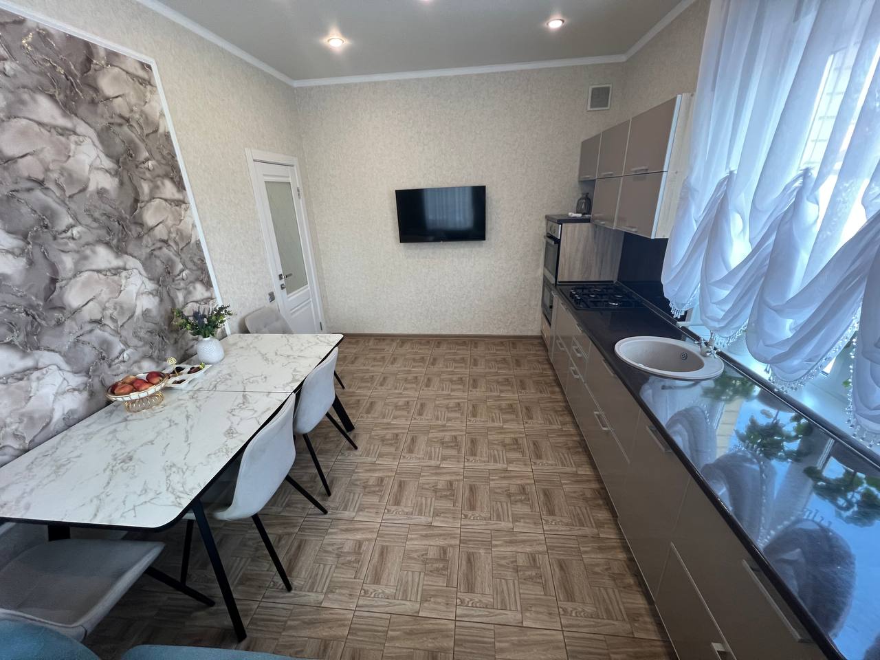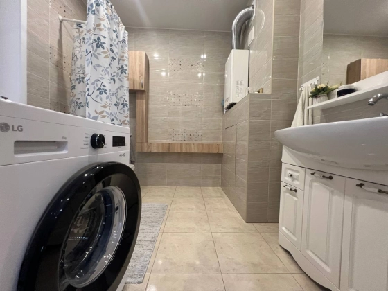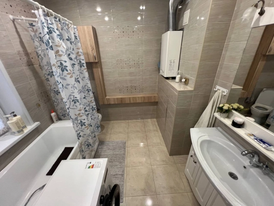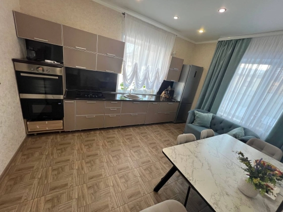 Интерьер дома выполнен в современном стиле с акцентом на функциональность и уют. Просторный зал на первом этаже с высокими потолками служит идеальным местом для семейных посиделок. Уютная кухня оборудована всей необходимой техникой, включая встроенную бытовую технику, что делает готовку настоящим удовольствием. Ванная комната на первом этаже оснащена современной сантехникой, а теплый пол обеспечивает комфорт в любое время года.