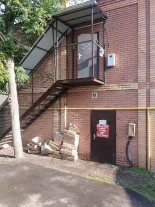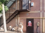 В здании есть 3 входа на первый этаж, и два - на второй.