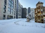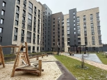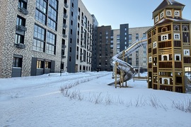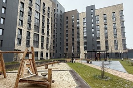 Благоустроенный двор с детскими площадками и зонами отдыха.
